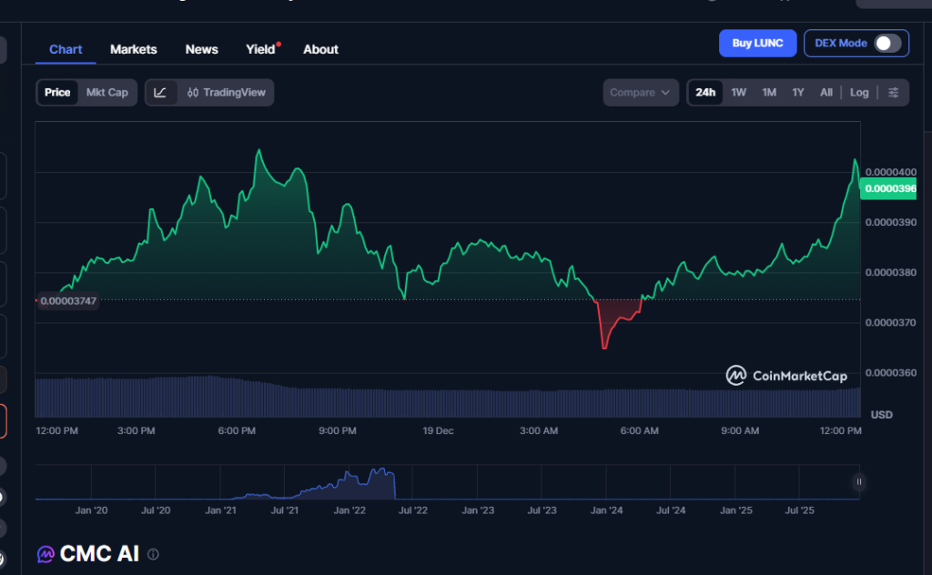 Update 9:34 A.M. : Following the news, Terra Classic rose by approximately 7%.